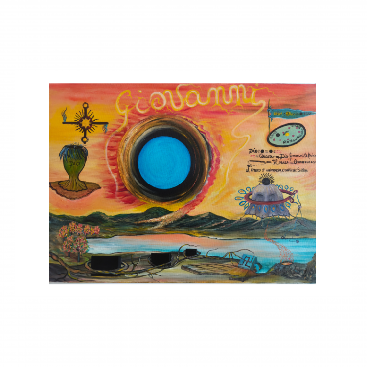 ENG: The artwork "spiegazioni" is a core piece of the " Cosmogonie" collection. Giovanni Mauceri explores the search for meaning through his expert use of color and form. This high-quality canvas print captures the intensity of the original painting, bringing a piece of italian contemporaryn art history into your home.